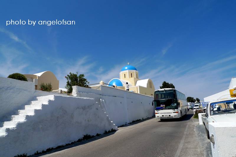 在伊亞(Oia)玩了兩天,接著要前往聖托里尼中心點,也是最熱鬧的城鎮~~費拉(Fira)。上回剛扺達費拉新港,趕著欣賞夕陽,包計程車前往伊亞,這次沒有壓力就選擇坐公車,時間一樣但價格差很大,不過能體會各式交通工具也挺好玩的。
